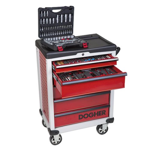 025-550 | CARRO DOGHER SEPANG 6 CAJONES + 2 COMPOSIONES DE 150 HERRAMIENTAS + MALETIN 94 HERRAMIENTAS