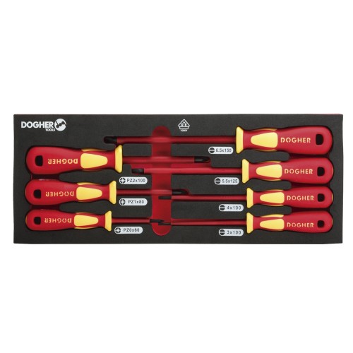 360-081 | BANDEJA COMBINABLE DOGHER 1/4 7 DESTORNILLADOR AISLADO VDE BOCA RECTA & POZIDRIV