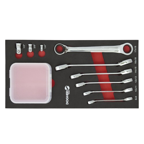 455-080 | BANDEJA COMBINABLE DOGHER 1/3 6 LLAVES CARRACA REVERSIBLE ACODADA 15º Y 3 ADAPTADORES