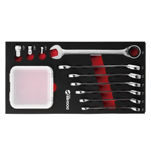 457-080 | BANDEJA COMBINABLE DOGHER 1/3 10 LLAVES COMBINADAS CARRACA REVERSIBLE 15º