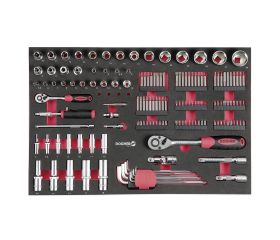 - Bandeja de espuma de alta densidad: Proporciona máxima protección y organización dentro del carro de taller.