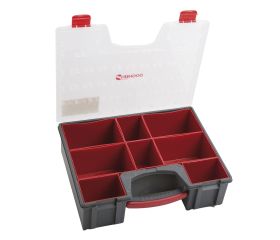 Caja organizadora compacta diseñada para almacenar y transportar herramientas, accesorios o pequeños componentes de forma segura.