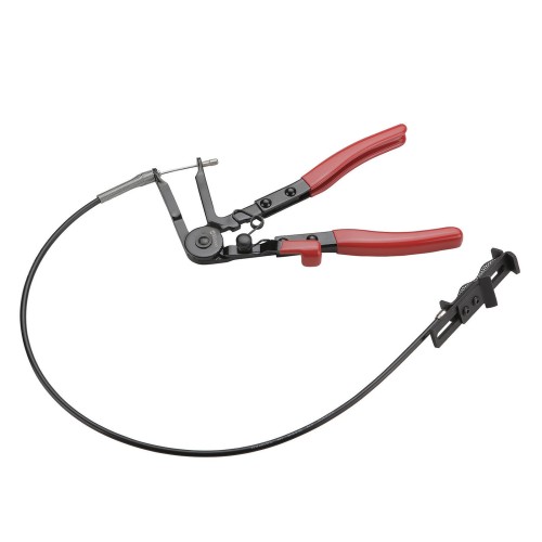 Gracias a su cable flexible de 600 mm y su sistema de bloqueo, permite trabajar con comodidad en sistemas de refrigeración, combustible o lubricación, manteniendo las abrazaderas abiertas sin esfuerzo.