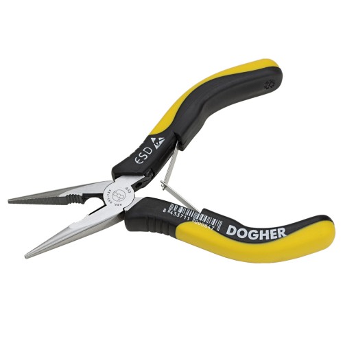 El mini alicate de bocas semirredondas con corte ESD de 125 mm es una herramienta de precisión diseñada para trabajos electrónicos, de ensamblaje fino o manipulación de componentes delicados.