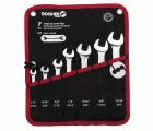 Juego de 7 llaves de doble boca abierta en sistema SAE (pulgadas), presentado en práctica bolsa de nylon para facilitar su transporte y almacenamiento.