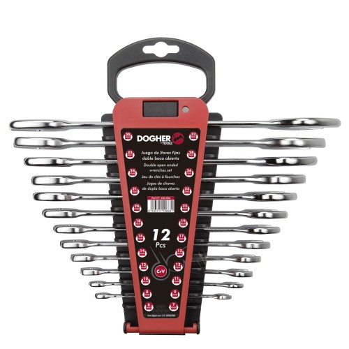 450-024 | JUEGO 12 LLAVES DOBLE DOGHER BOCA ABIERTA SOPORTE PLASTICO 6x7-30x32