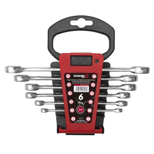 454-016 | JUEGO 6 LLAVES DOS BOCAS DOGHER CrV ESTRELLA PLANA SOPORTE PLASTICO
