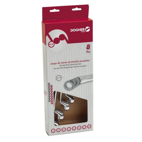 El juego de 8 llaves de dos bocas CrV con diseño de estrella acodada es una solución profesional para trabajos mecánicos que requieren precisión y resistencia.