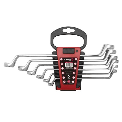 453-016 | JUEGO 6 LLAVE DOS BOCAS DOGHER CrV ESTRELLA ACODADA 8 - 19 SOPORTE PLASTICO