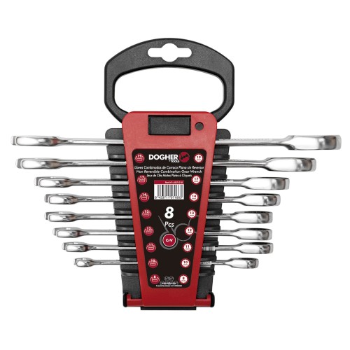 4557-018 | JUEGO 8 LLAVE COMBINADA DOGHER CrV FIJA Y DE CARRACA SIN REVERSOR SOPORTE PLASTICO