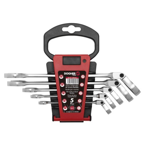 458-015 | JUEGO 5 LLAVES COMBINADA DOGHER CrV FIJA Y DE CARRACA FLEXIBLE SOPORTE PLASTICO