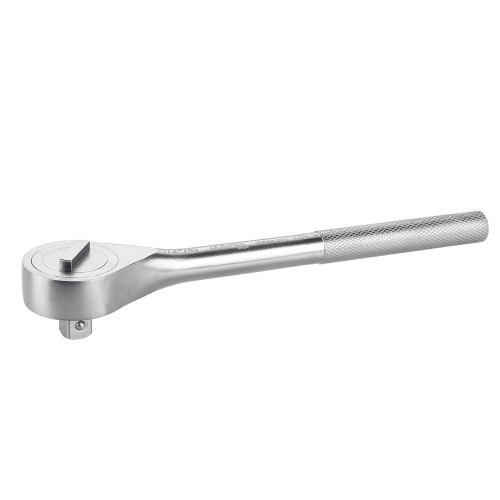Llave de carraca profesional fabricada en acero inoxidable AISI 420 que garantiza una alta resistencia a la corrosión y al desgaste.