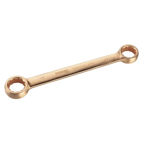 Llave estrella plana fabricada con aleaciones especiales de cobre y berilio que evitan la generación de chispas, ideal para trabajos en entornos con riesgo de explosión o atmósferas inflamables.