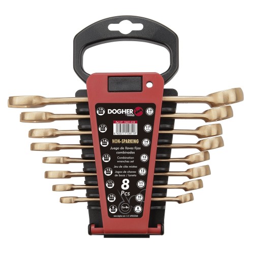 Juego de 8 llaves combinadas fabricadas en aleación antichispa, ideales para trabajos en atmósferas potencialmente explosivas.