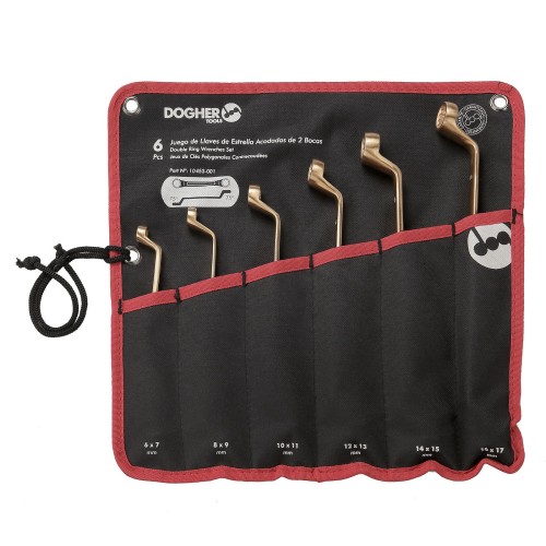 Juego de 6 llaves estrella acodadas a 75° fabricadas en material antichispa, ideal para trabajos en entornos con riesgo de explosión.