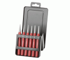 Juego profesional de 6 piezas compuesto por botadores cónicos y granete, fabricado en resistente acero Cromo Vanadio para ofrecer una elevada durabilidad y resistencia al desgaste.