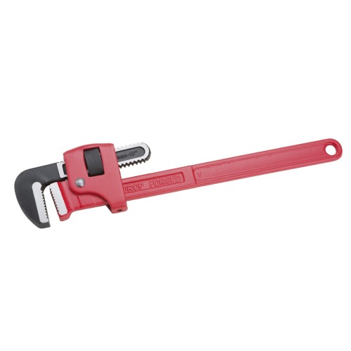 La llave Stillson forjada profesional está diseñada para ofrecer un agarre seguro y potente en trabajos exigentes de fontanería y mantenimiento industrial.