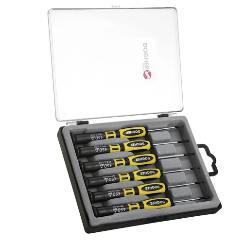390-001 | JUEGO 6 DESTORNILLADOR PROFESIONAL DOGHER PRECISION DISIPACION ELECTROESTATICA ESD CrMo PLANA PHILLIPS