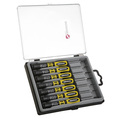 390-002 | JUEGO 7 DESTORNILLADOR PROFESIONAL DOGHER PRECISION DISIPACION ELECTROESTATICA ESD CrMo RECTA PHILLIPS