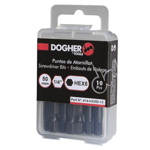 414 | Caja 10 Puntas de Atornillar DOGHER S2 50mm Hexagonal