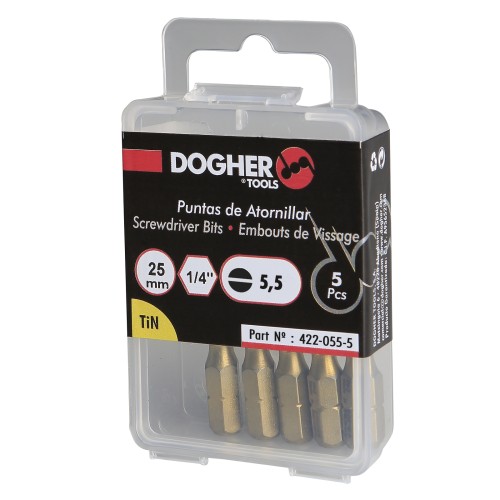 422-5 | Caja 5 Puntas de Atornillar DOGHER S2 25mm Recta TiN
