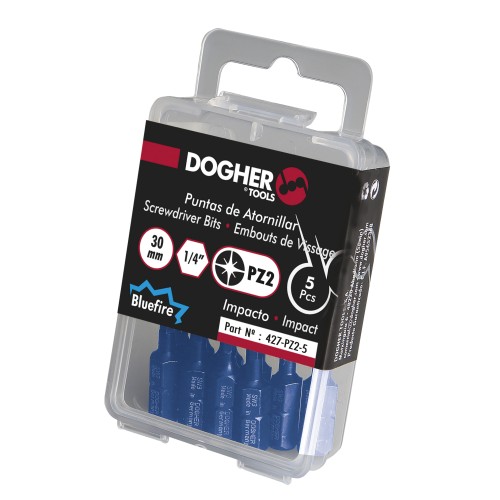 427-Pz-5 | Caja 5 Puntas de Atornilllar de Impacto DOGHER Bluefire S2 30mm Pozidriv