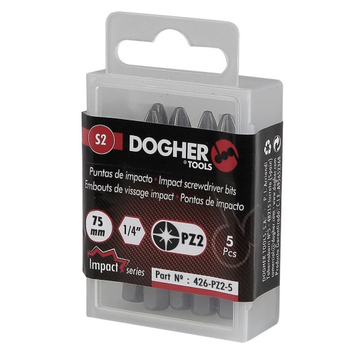 426-Pz-5 | Caja 5 Puntas de Atornilllar DOGHER de Impacto S2 75mm Pozidriv