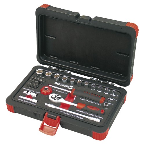 500-002 | MALETIN DOGHER LLAVES DE VASO BIHEXAGONAL 1/4 34 PZAS