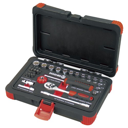 501-002 | MALETIN DOGHER LLAVES DE VASO BIHEXAGONAL 1/4 34 PZAS