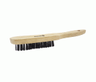 Cepillo manual con mango de madera y cuerpo robusto, diseñado para trabajos de limpieza y desbaste en superficies metálicas.