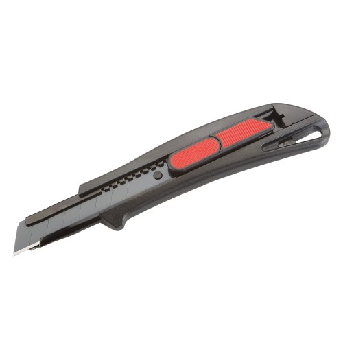 Está equipado con una hoja fraccionable de 18 mm de ancho, 100 mm de longitud y 0,5 mm de espesor, perfecta para adaptarse a diferentes necesidades de corte.