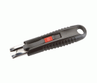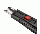 Cutter profesional con sistema de seguridad autoretráctil que minimiza riesgos durante el uso.
