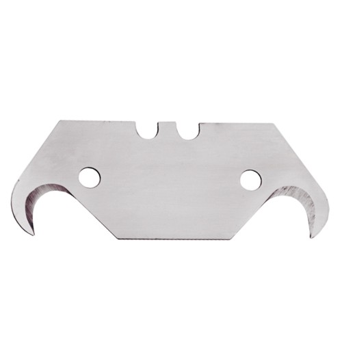 El blister contiene 5 cuchillas con forma de gancho, ideales para cortes precisos en materiales flexibles como linóleo, moquetas o plásticos.