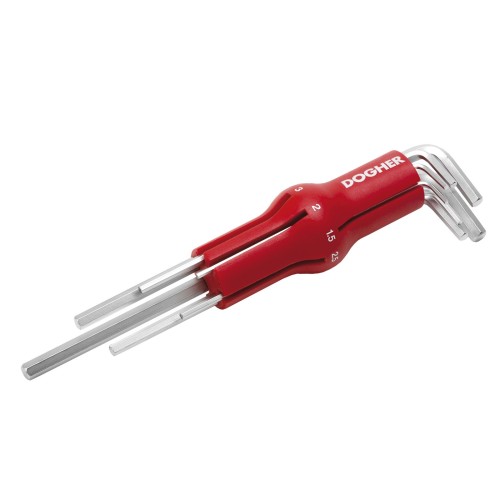 Juego de 7 llaves macho hexagonales Dogher fabricadas en acero cromo-vanadio (CrV) con acabado canutillo y diseño en T.