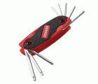 Expositor compacto de sobremostrador que incluye un juego de 8 llaves macho Torx con sistema de seguridad. Fabricadas en acero cromo vanadio (CrV), estas llaves ofrecen una gran resistencia y durabilidad. Su diseño tipo navaja facilita su transporte y uso en espacios reducidos. El surtido cubre desde T10 hasta T40, ideal para aplicaciones industriales y técnicas. El expositor está diseñado para facilitar la venta en punto de venta, permitiendo una presentación ordenada y accesible del producto.