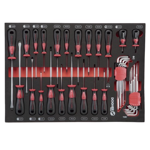 300-092 | BANDEJA CONFIGURABLE DESTONILLADOR PLANO - TORX - PHILLIPS - LLAVES SAE 23PCS ENTERA