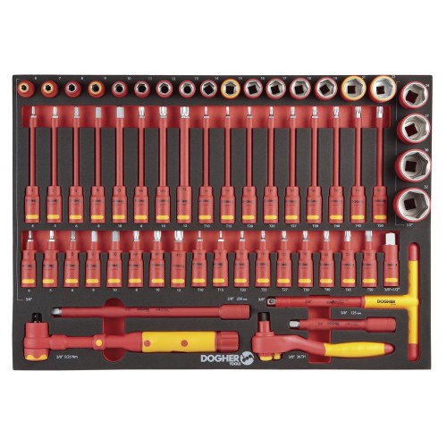 5116-080 | BANDEJA COMBINABLE 60PCS VDE HEXAGONAL Y ACCESORIOS 3/8-1/2 ENTERA
