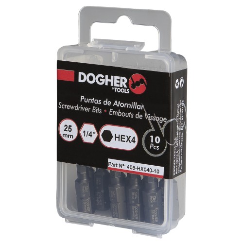 | 405-HX1/4-10 | 405-HX| Caja 10 Puntas de Atornillar DOGHER S2 25mm Hexagonal Pulgadas H1/4" | 1/4" | Caja | 8433711142394 | |