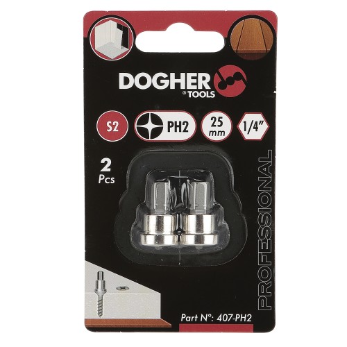 407-PH2 | 2 Puntas DOGHER Atornillar con Tope S2 Phillips 2X25