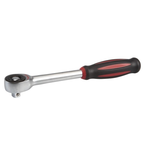 La llave carraca de mango giratorio 1/2" ofrece un accionamiento preciso y cómodo en espacios reducidos.
